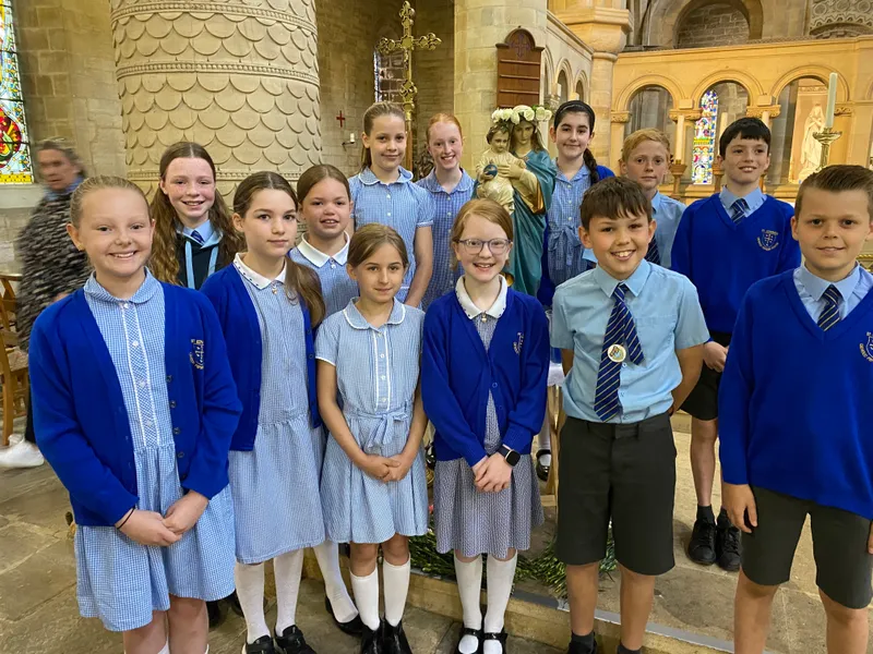 and other feeder primaries in a Marian mass at St Mary's Church before walking up to the shrine, where they