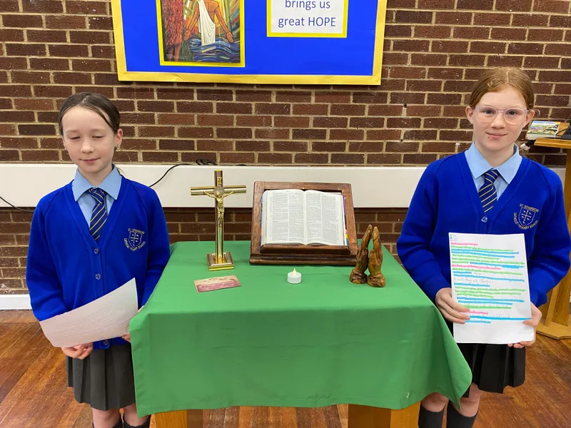 Y6 Pupils lead whole school prayers: Some of our Faith in Action pupils plan and lead Whole