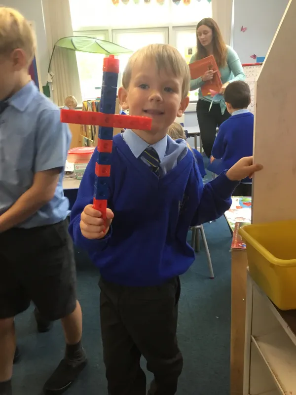 Y1 pupil made a cross out of multi-link to put on their altar: because it's the best thing