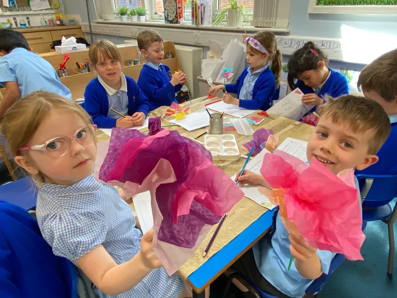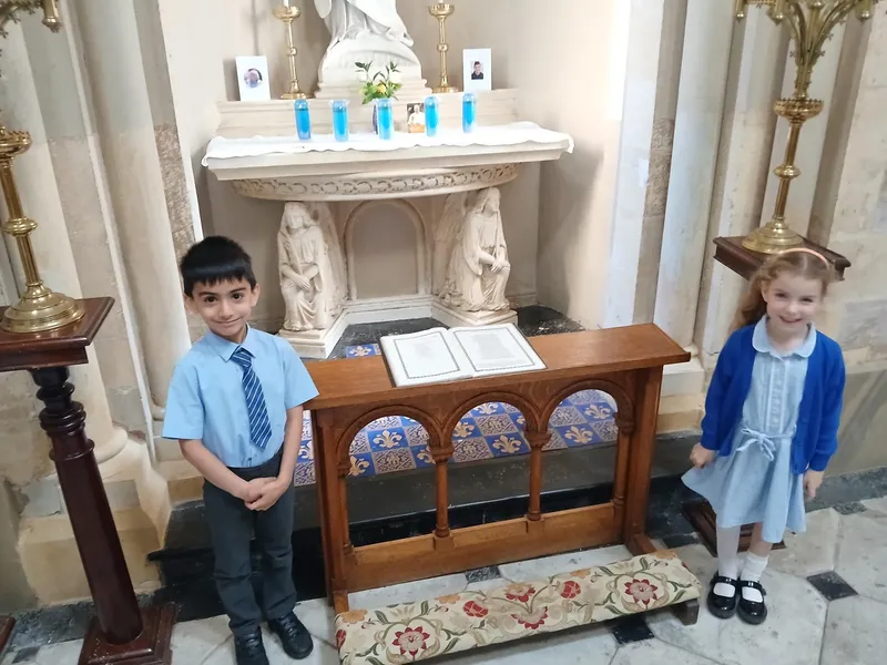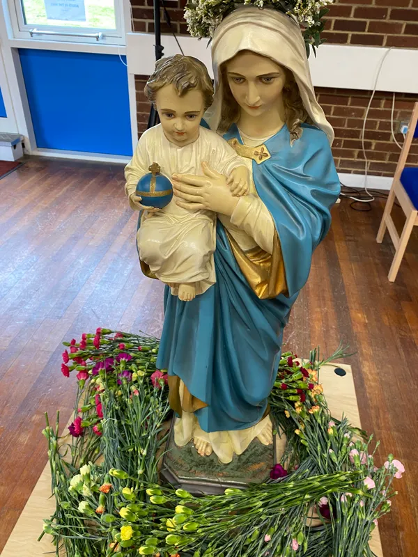 All of Y6 took part in a procession and crowned a statue of Mary. (May 2023)