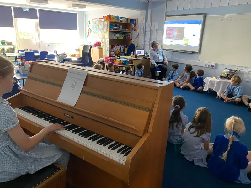 One of our Y6 pupils learnt to play a hymn on the piano that Y2 had learnt