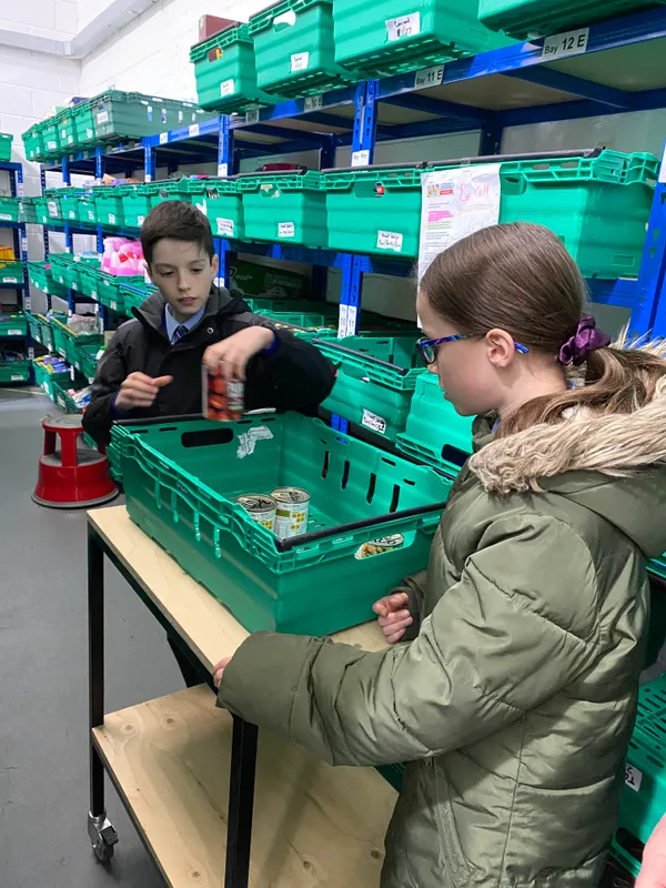 Foodbank warehouse. They then reported back to all the other Mini Vinnies in school. (Spring 2023)