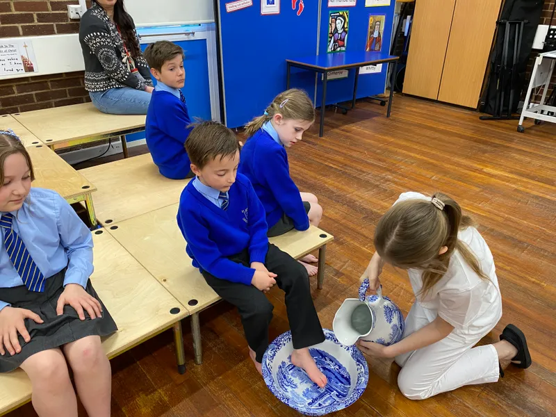 We celebrated Maundy Thursday in school, including re-enacting Jesus'
