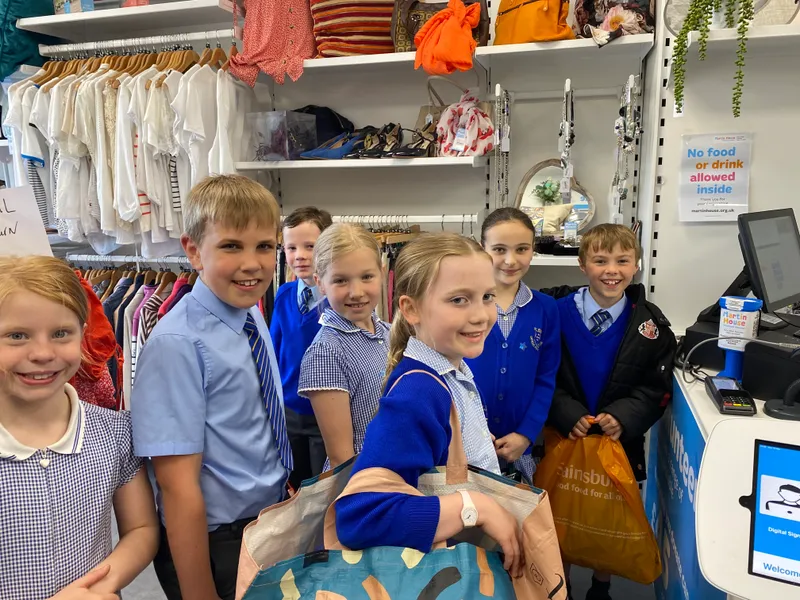 Class 5 pupils collected unwanted items and took them down to St Gemma's charity shop